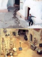 Once we arrived in Tunis we began to work our way through the city towards the bus station. Along the way we saw a familiar hotel. It looked almost exactly like the sandcrawler that was used in the movie by the Jawas. Our bus took us to Tozeur where we checked into a hotel for the next couple of days. At sunrise we rented a car and went to look for a guide. Before leaving the USA, I had read about a man that worked in the Tozeur tourist office. We received a few strange looks when we walked in and asked for Hamida Chebi, but he came out to meet us after a minute. He agreed to show us around and surprised us by pulling out a Star Wars movie storybook as well as some pictures taken on the Episode I set during filming.