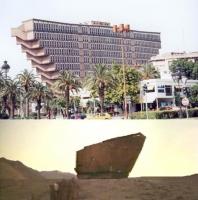After thanking and paying Hamida, we drove to Matmata and checked into the Sidi Driss hotel. This is the same hotel that was used for the interior of the Lars homestead. It was still early so we got back in the car and went to Jerba, which is a small island right off the coast. Tatooine was a barren desert world, but some of the scenes were filmed just feet from the sea. Ben Kenobi's house, the entrance to Mos Eisley, and the lost Anchorhead scenes were all shot on beachfront property. We had to ask for directions in the city of Ajim before we were able to find the inside of Mos Eisley. All of the city scenes were filmed in a small area so all you have to do is look round at different angles to see them. The city has changed a lot since the seventies, but many things are still very recognizable. One thing that was completely obvious was the cantina. It is in the center of the street and other then some garbage heaped up it looks exactly the same as it used to. Even a fiberglass dome used as set decoration was still just lying there after all of these years.